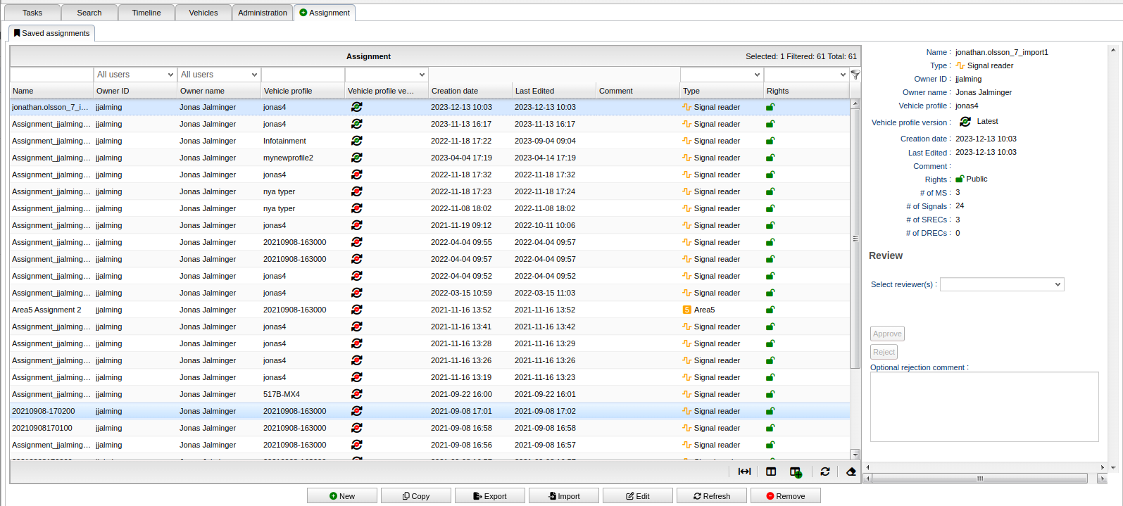 Assignment review page