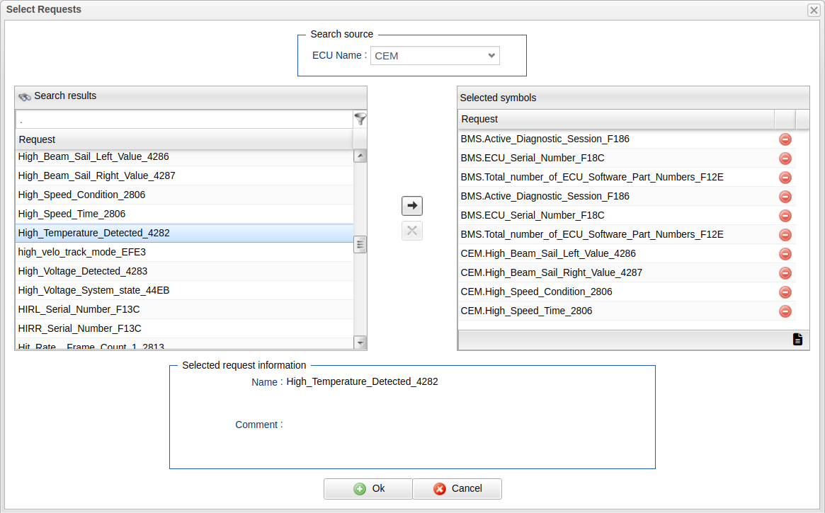 Select Requests window