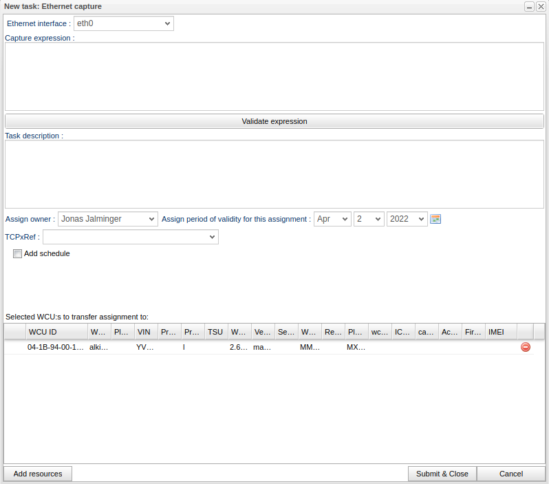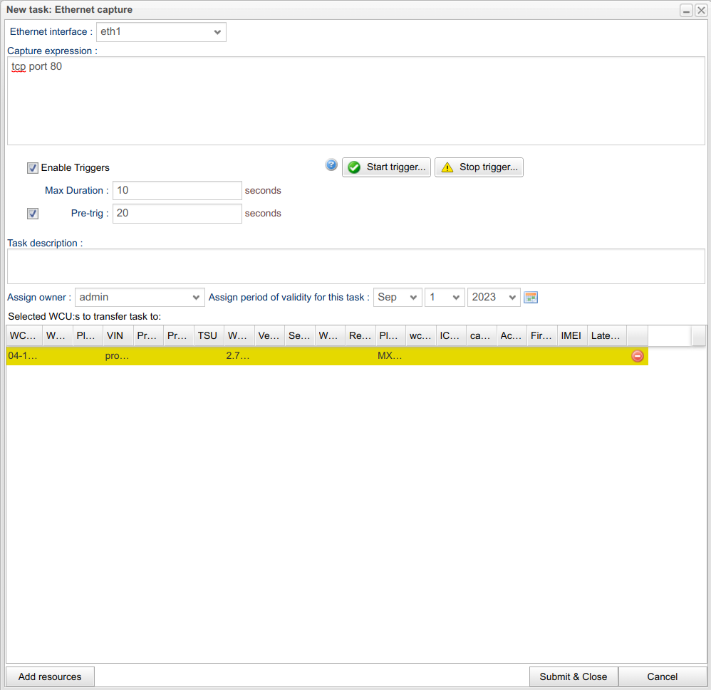 Creating an ethernet capture task
