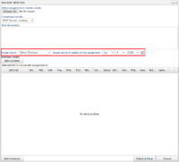 If you want to set an owner and expiry date (or alter values) for a previously created task, right-click the task in the Search view. As seen in illustration "Edit task", a context menu will appear with the option "Edit metadata". When selecting "Edit metadata" a new window pops up, as seen in illustration "Edit task owner and expiry date"", where the current task owner and expiry date is displayed. By selecting a user and a expiry date and then pressing OK the database will be updated with the new values.