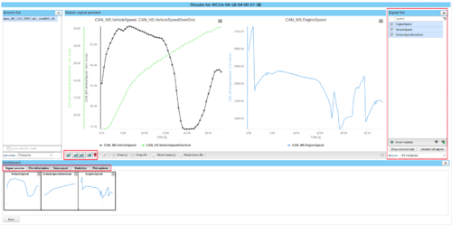 Information from the chosen MDF file is displayed in the "File information"-tab in the "Dashboard"-section, see Figure "Plot Selected Signals".