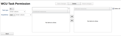 Set what type of tasks the permission applies to. It is automatically set to have all selected but you can unselect all and selecting other tasks. This option is only available on the WCU task, assignmentcreator,monitor and module permissions. It corresponds to the set of available modules for a WCU.