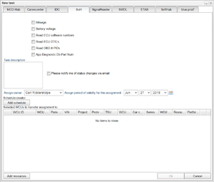 The fourth tab is for State of Health (SoH) assignments. With this kind of assignment you can, currently, make four different read-outs. Mileage, ask the car to report how many kilometers it has run. Battery voltage, ask for the current voltage. Read all ECU software numbers in a vehicle and lastly you can read all error codes set by any ECU. To add a GDS file to a vehicle, seeThe_Portal_Administrator_View#The_Edit_Car_Dialog. The tab can be found in Figure 7.