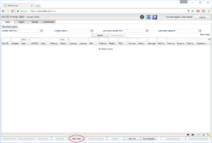 To create a new task, press the "New task" button which you can see in illustration "New task button". When pressing the button a dialog will be shown as depicted in Figure 5. There are nine tabs in this dialog: MCD-Hub, Canrecorder, IDC, SoH, SignalReader, SWDL, ETAS, SoftHub and blue piraT. Figure 5 handles the MCD-Hub tab.