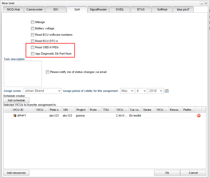 State of health assignments have been extended to include a service for OBD-II PIDs as well as a service for reading what is called "Application Diagnostic Db Part Num"