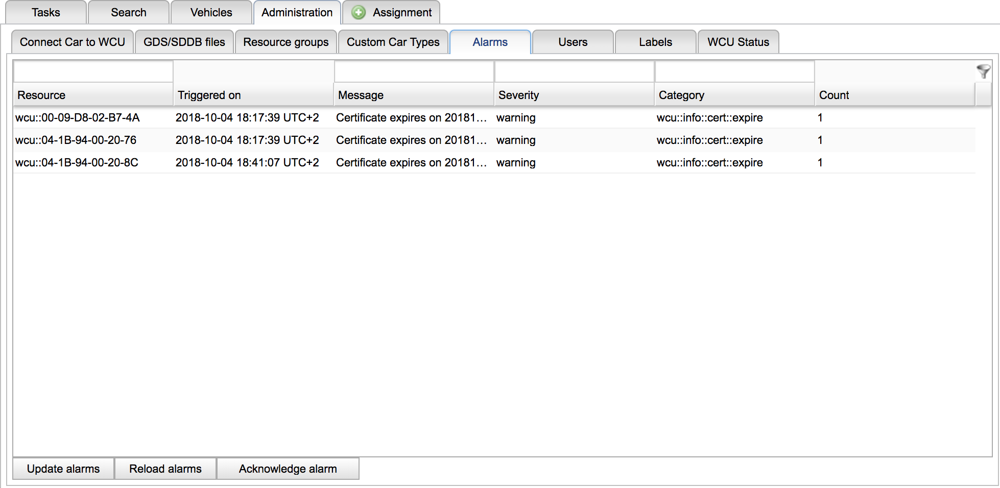 An image of the alarm panel.