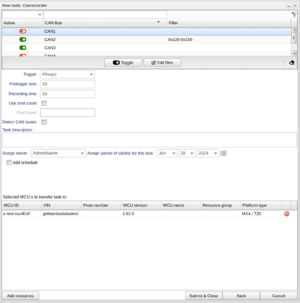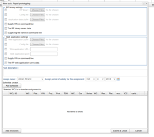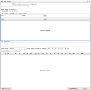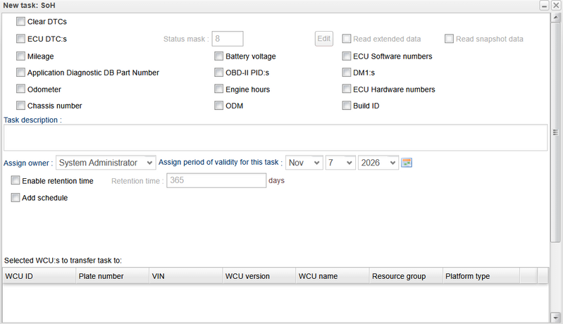 - New Task, creates a new task for the selected WCUs. See creating tasks for further explanation.