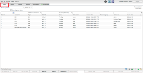 In the Tasks tab you can search for tasks, view and manage the tasks, see the log files, access result data files, and much more.