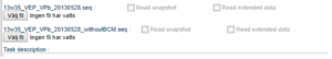 There are three sections of checkboxes that are framed by a blue line which filter the shown file types. The framed sections represent one file type with their own sub-groups and they are labeled according to what file type they filter. When the outline checkbox in the framed section is checked, it will show you that section's file type. When the respective outline checkbox is not checked, the other checkboxes are disabled as they represent the sub-groups for that file type. As with the other search functions in the WICE portal, leaving all filters empty will result in everything being shown. The section labeled "Text" has three other checkboxes which will show you "Common", "Separate" and "All" text files. Note that not all text files have the subtype "Common" or "Seprate" and can only be shown in "All". The section labeled "MDF" has two other checkboxes which will show you MDF files "With module names" or "Without module names" (i.e. either with or without prefixes in the signal names). The section labeled "Vector" has two other checkboxes which will show you files referring to frames by "Frame ID" or "Frame name". Typically, the Signal Reader measurement tool generates these file types. These tools are marked blue in Figure "Get Result File Window".
