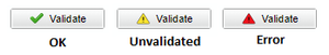 Fill out the start trigger condition for the trigger. This is easiest to do in the Edit expression window that you can get to by clicking one of the Edit buttons. To find a new signal to add a condition for, use the Add signal button. Here, you can browse all signals available for this assignment. Use the dropdown to browse signals from different can-busses and Wice generic internal signals. If you want to browse the signals currently in use in the assignment for the selected signal source, check the Search in assignment box. If you want more information about a signal, select it and click More info. When you have found the signal you want, double click it or select it and click Add signal. Now you can use the Operators list to add a condition for the signal, for example " > 0". When you are satisfied with the start condition, you will notice that the Validate button has a yellow warning symbol on it. This means that the expression is unvalidated, press the button to validate the expression. The buttons icon now either turns red (expression is unvalid) or green (expression is correct). See Figure "Validate Button States" for the different state of the validate button. Click Save to save the expression. The list of operators supported in trigger condition is available here.
