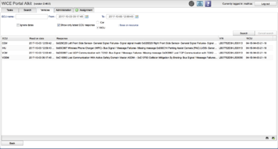 When selecting a row in the table the selected row changes to a blue shade. You can modify the description of the WCU by clicking in the “Edit Description” button and enter a new description. You can search among the vehicles log files by clicking the “Get log files” button.