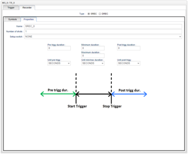 By selecting the tab Recorder you can add a recorder to the trigger. This will populate the information window with settings for this recorder, starting with the signals to be recorded.
