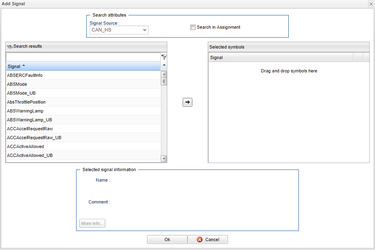 Click the Add Signal button to open a window to add signals for recording. This window is much like the window for adding signals for the trigger, only differing in the fact that you can select multiple signals in this window. The selected signals for this recorder are shown in the right table, see Figure 4. To add new signals to this table, you can either: