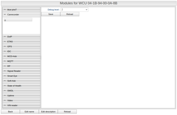 The set of checkboxes for the different modules that are present are at the top. Check or uncheck these to tell the WCU if they are present or not. Disabling modules will speed up the boot process of the WCU (but will make the corresponding functionality unavailable).
