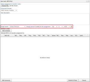 This window also lists all WCUs included in this task.