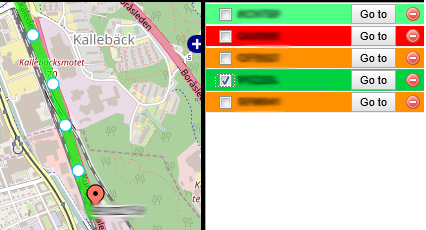Tracking a moving car. The colors in the list indicates which cars are active and which are silent.